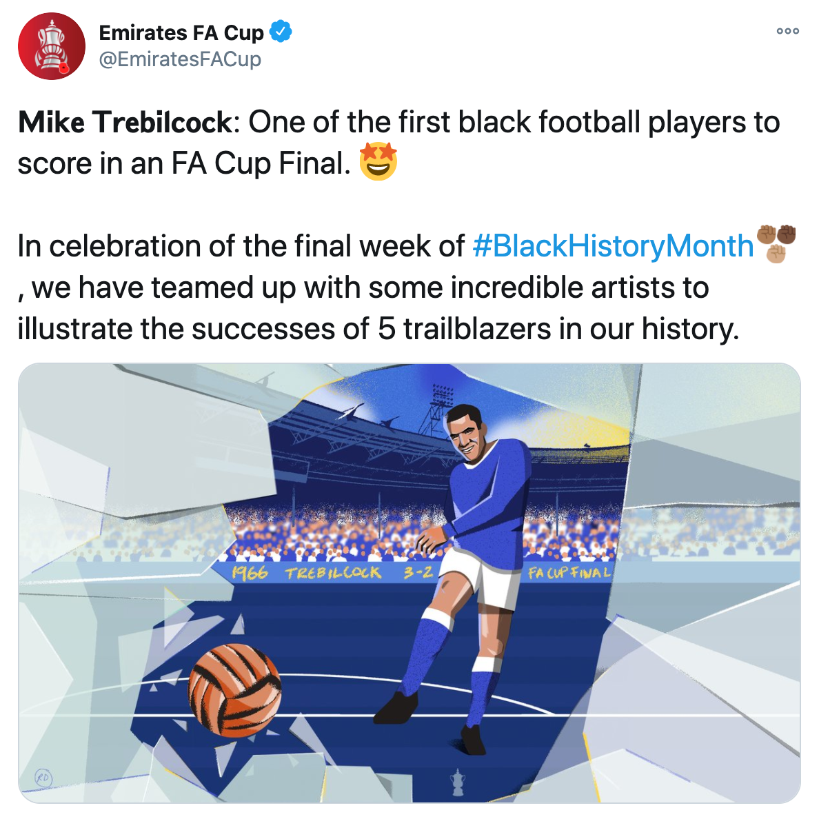 Illustration of Mike Trebilcock, celebrated by the FA for Black history month 20'